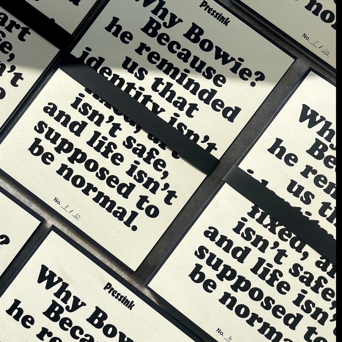 Pack contains 8 original letterpress prints: